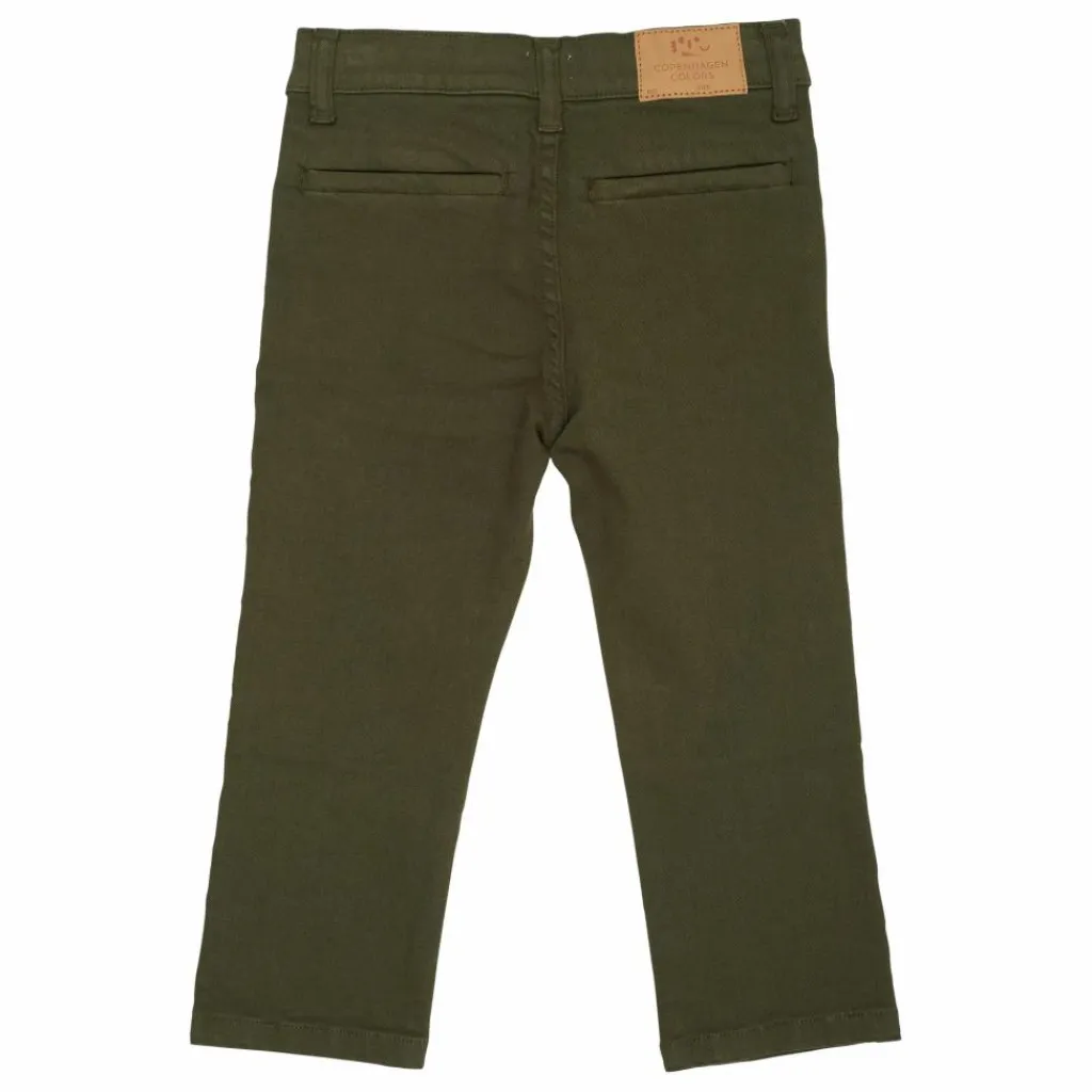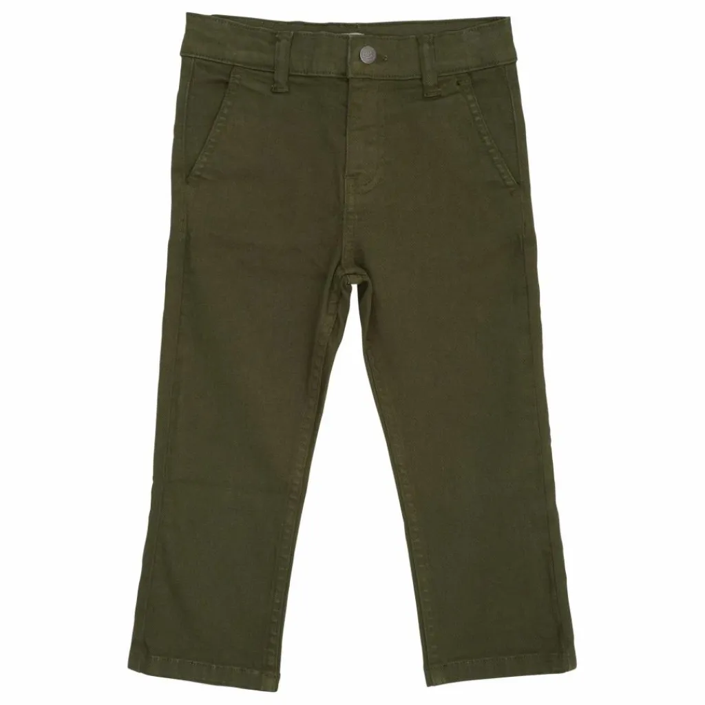 - Ce pantalon a une poche de chaque côté. Le pantalon est réglable à la taille. Les chinos sont fabriqués en 100% coton biologique.