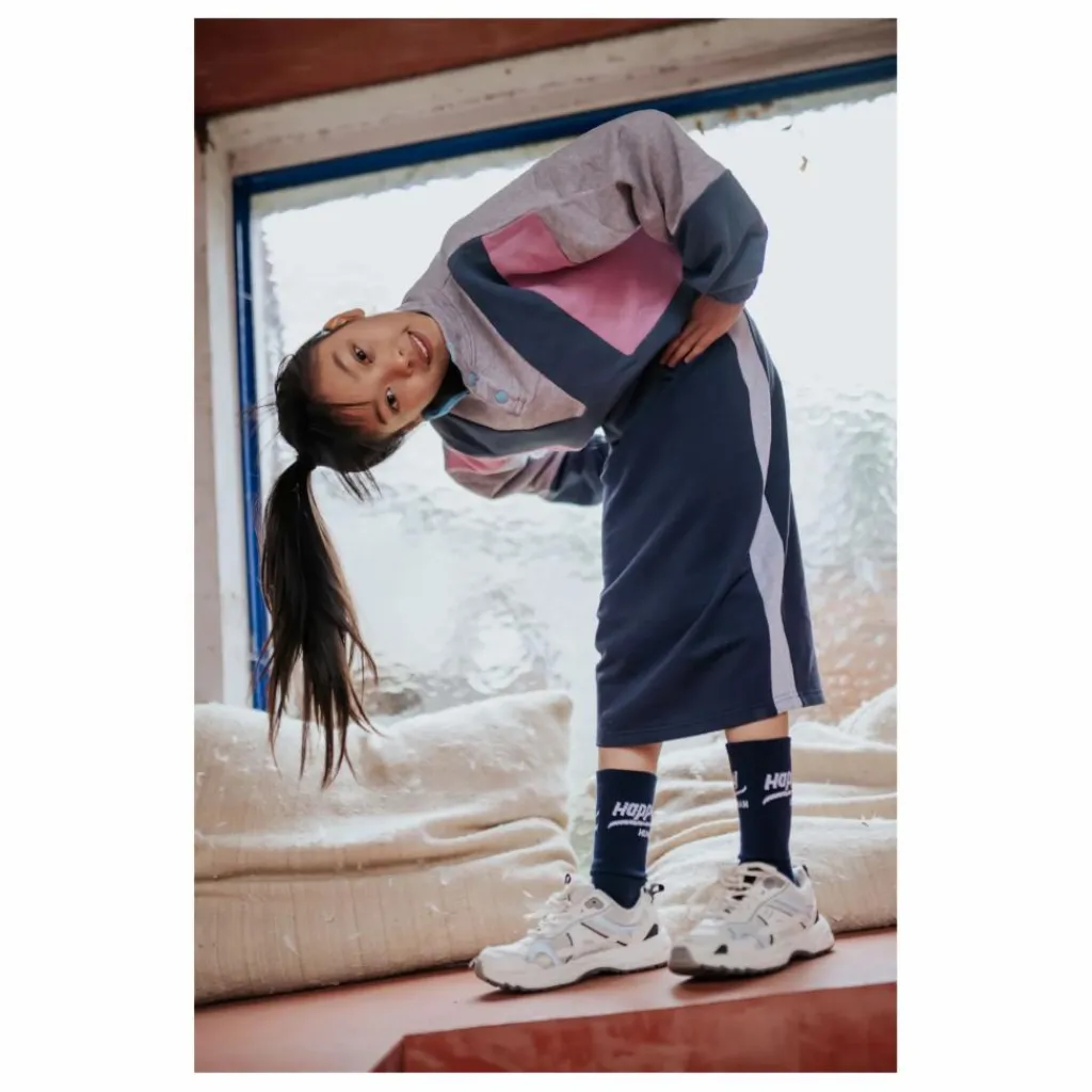 - Ajoutez une touche amusante et sportive à la tenue de votre enfant avec ces chaussettes de sport pour enfants d’inspiration rétro en bleu marine. Dotées d’un motif rayé classique et du message encourageant « Happy Human », ces chaussettes sont à la fois élégantes et confortables. Fabriquées dans un tissu doux et respirant, elles sont parfaites pour être portées tous les jours, de l’école à la récréation. Un essentiel joyeux pour les enfants actifs !