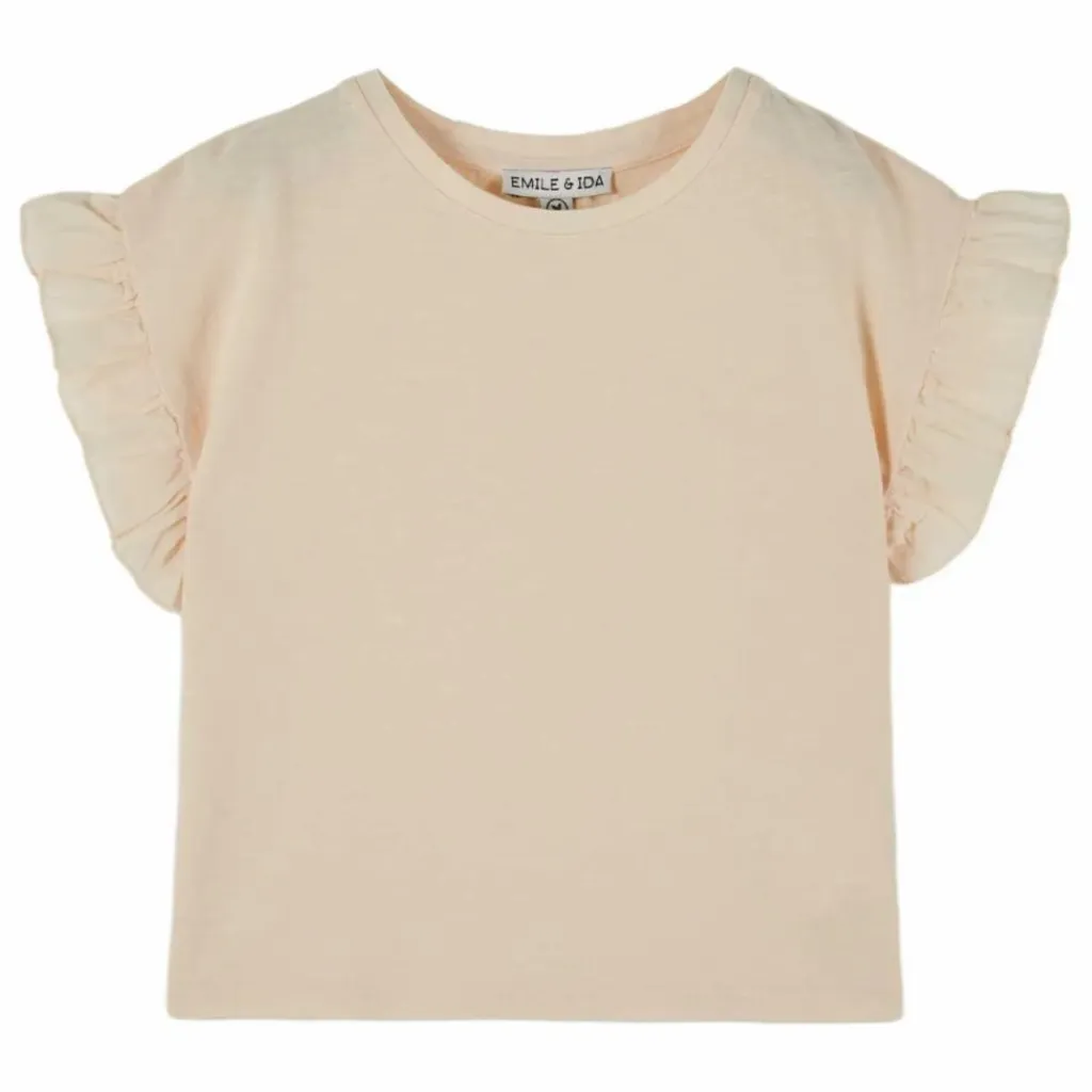 Tout simple, il est plébiscité depuis quelques années pour sa douceur incomparable et parce qu’il ne suit pas les tendances, mais les mouvements des filles. Les entournures se terminent par un volant en voile de coton, délicatement ourlé d’un petit point de broderie. L’encolure ronde est agrémentée de bord-côte, tandis que la base est finie par un ourlet surpiqué.