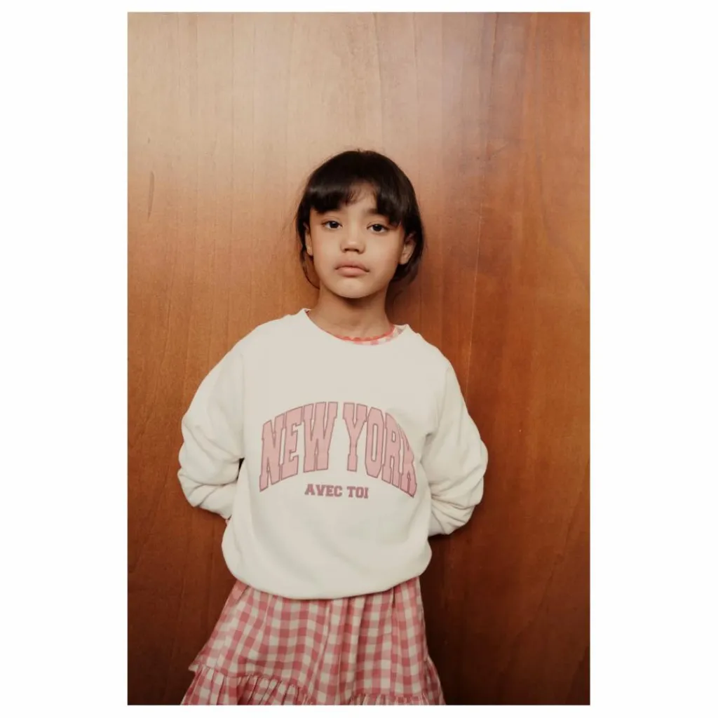 - Sweatshirt en jersey de coton biologique molletonné et gratté bitume imprimé » New York avec toi » sur la poitrine.