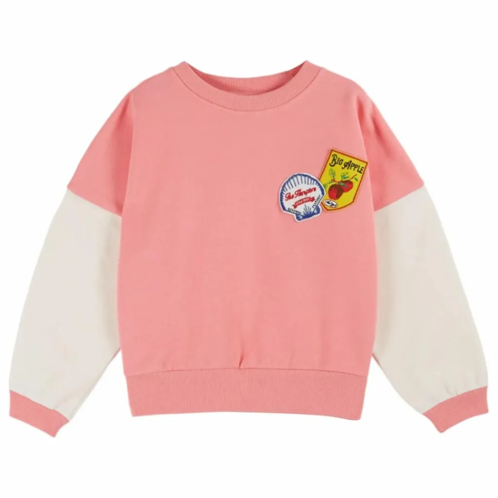 - Sweatshirt en jersey de coton biologique, molletonné et gratté, rose avec des manches blanc cassé. Deux badges faisant référence à New York sont cousus sur le cœur de vos filles.
