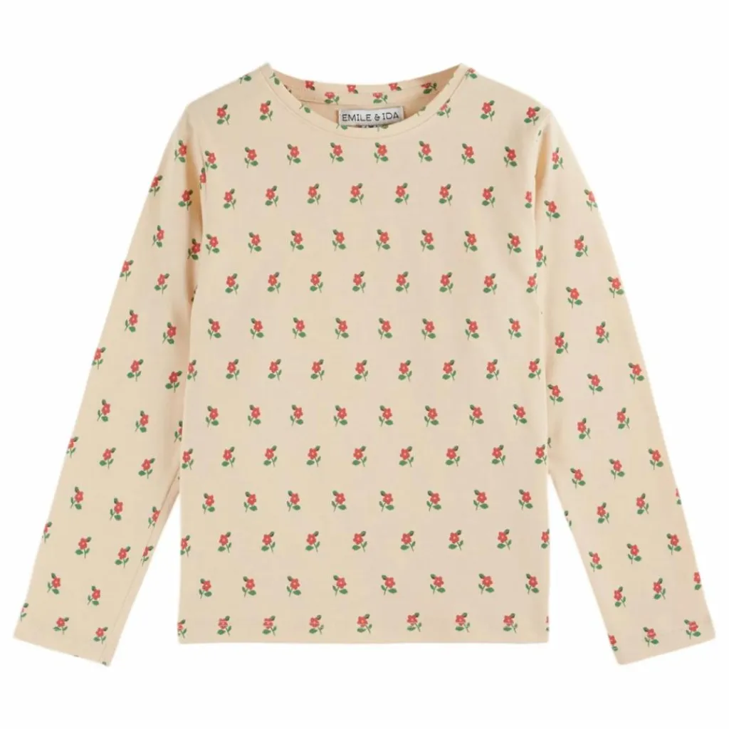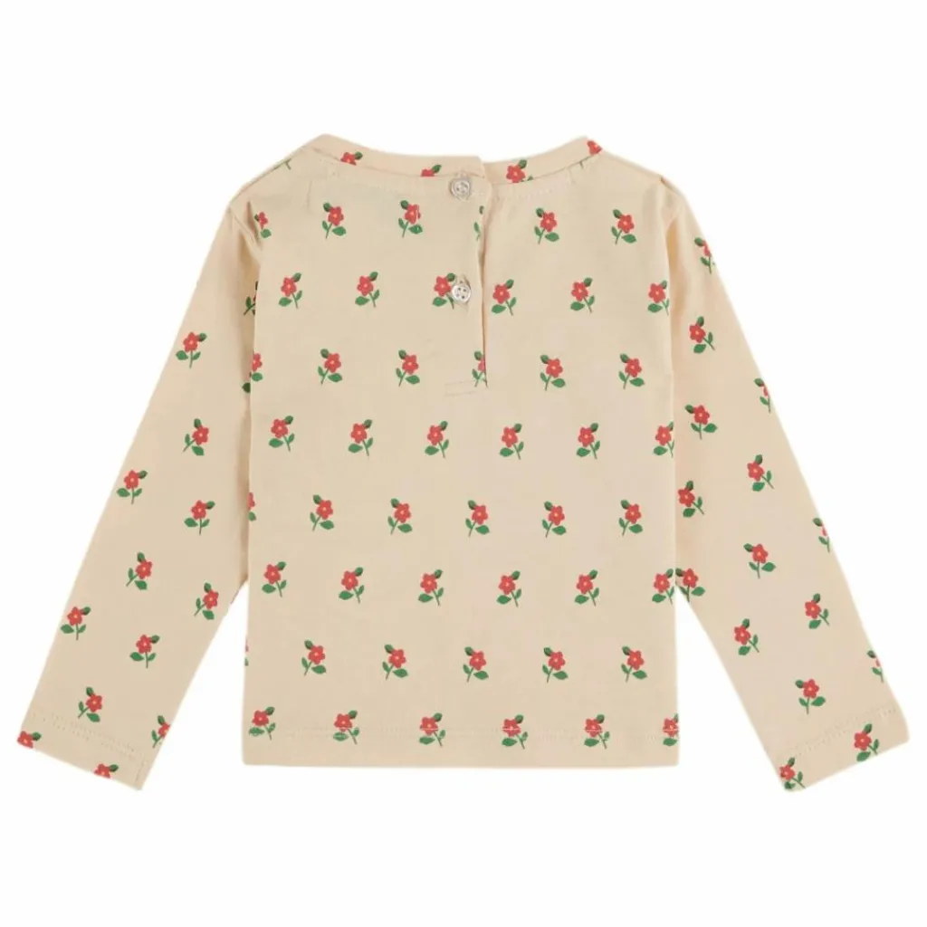- Tee-shirt en jersey de coton biologique crème imprimé de coquelicots rouges en all-over.
