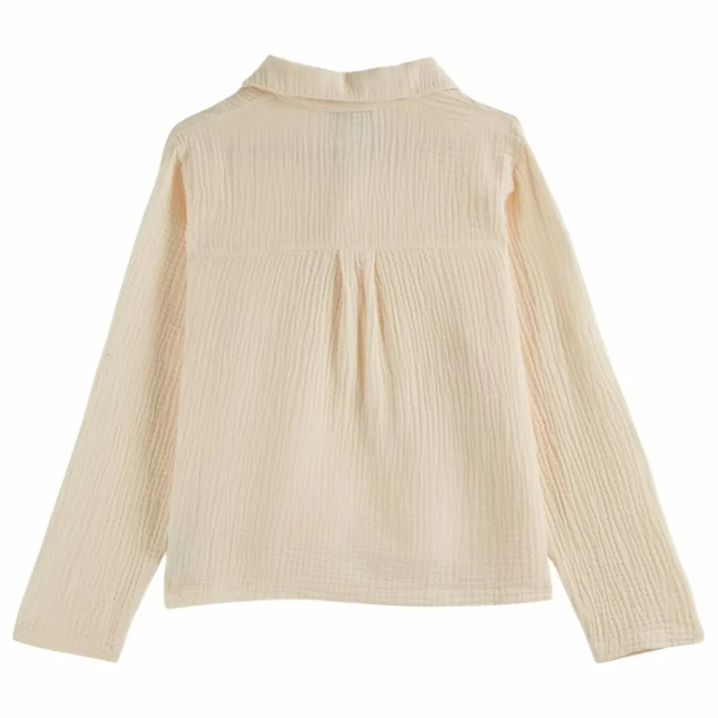 - Chemise en double gaze de coton écrue. Pour confectionner cette pièce nous avons sélectionné la gaze de coton toute doudoux, moelleuse et confortable, comme nous le disent les bébés et les enfants qui l’on essayée.