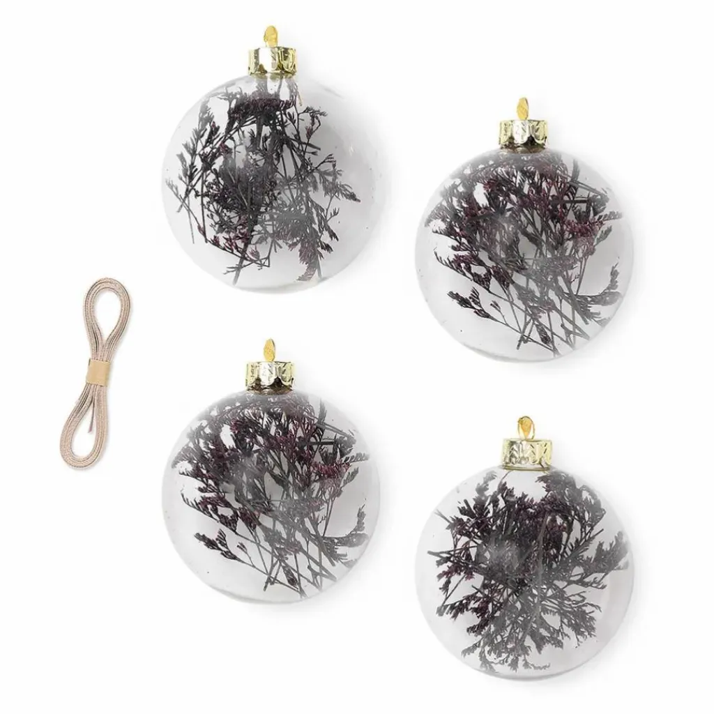 - Ajoutez une touche florale et délicate à votre arbre de Noël. Chaque sphère en verre contient des fleurs séchées, accompagnée d’un ruban soyeux.