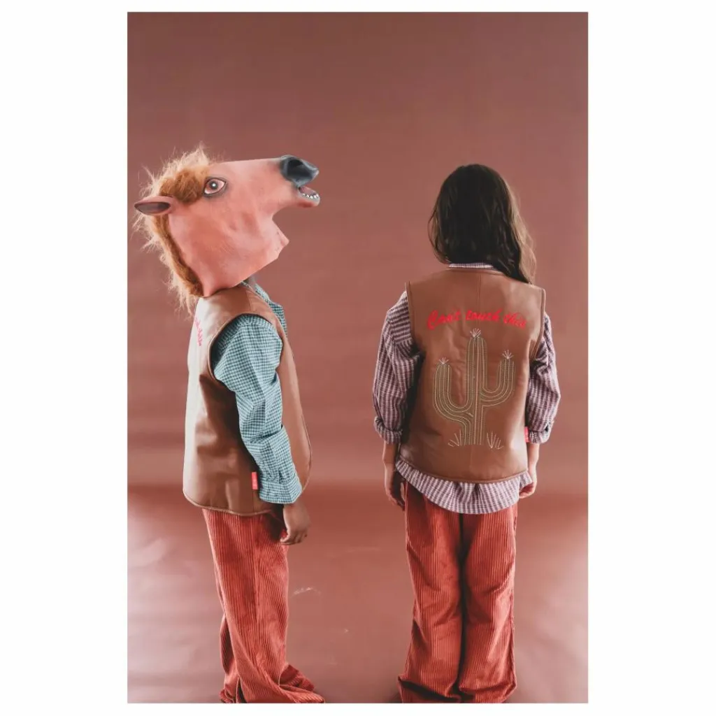 - Laissez votre enfant exprimer le cow-boy qui sommeille en lui avec la veste en cactus « Can’t Touch This ». Ce gilet est un clin d’œil ludique au Far West. Il est fabriqué en cuir de mouton nappa de première qualité pour une finition élégante et durable. Doté d’un motif de cactus brodé, il apporte une touche de fantaisie à toute aventure. La luxueuse doublure en peau de mouton assure chaleur et confort, tandis que la solide fermeture à glissière YKK permet d’affronter toutes les escapades. Parfaite pour les petits pionniers, cette veste est une pièce incontournable pour les petits aventuriers audacieux.