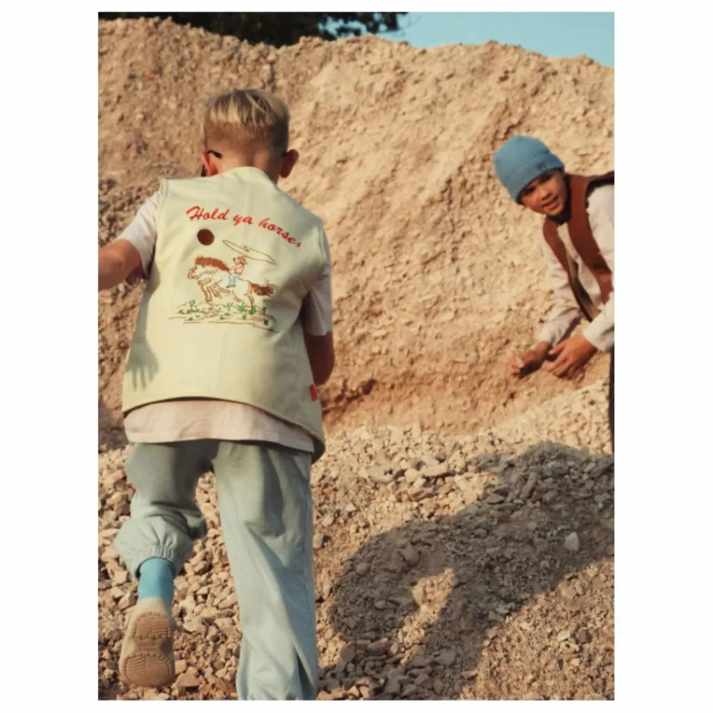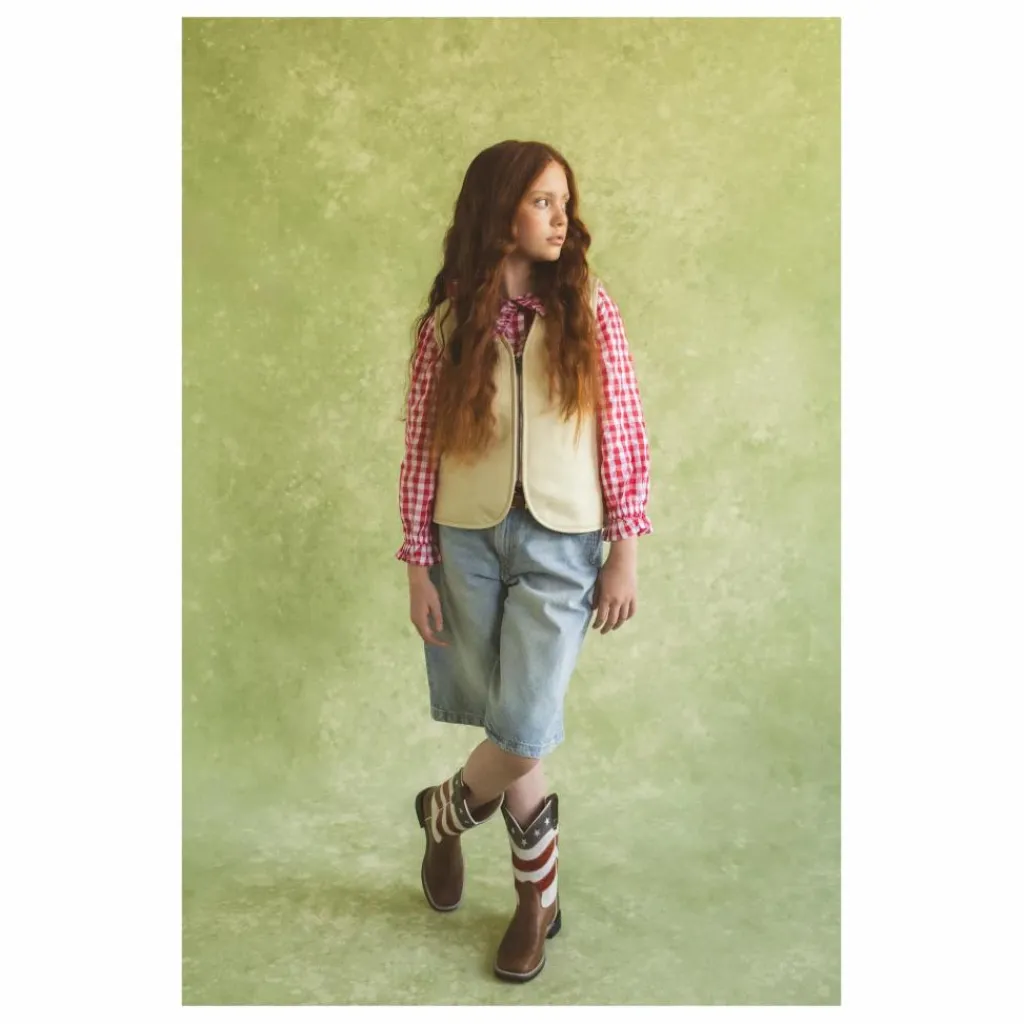 - Voici la veste Cream Leather Nappa Kids Vest – une pièce élégante et durable pour votre petit aventurier. Fabriqué en cuir nappa souple de première qualité, ce gilet est orné d’une superbe broderie de cheval Wild Ride qui évoque l’esprit du Far West. Conçue pour être à la fois confortable et fonctionnelle, elle est dotée d’une fermeture à glissière YKK de haute qualité pour faciliter le port et d’une doublure en peau de mouton pour garder les enfants au chaud. Qu’il se rende à un rodéo ou qu’il s’adonne simplement à son âme de cow-boy ou de cow-girl, ce gilet est le complément idéal de sa garde-robe pour une chevauchée aussi folle que son imagination.