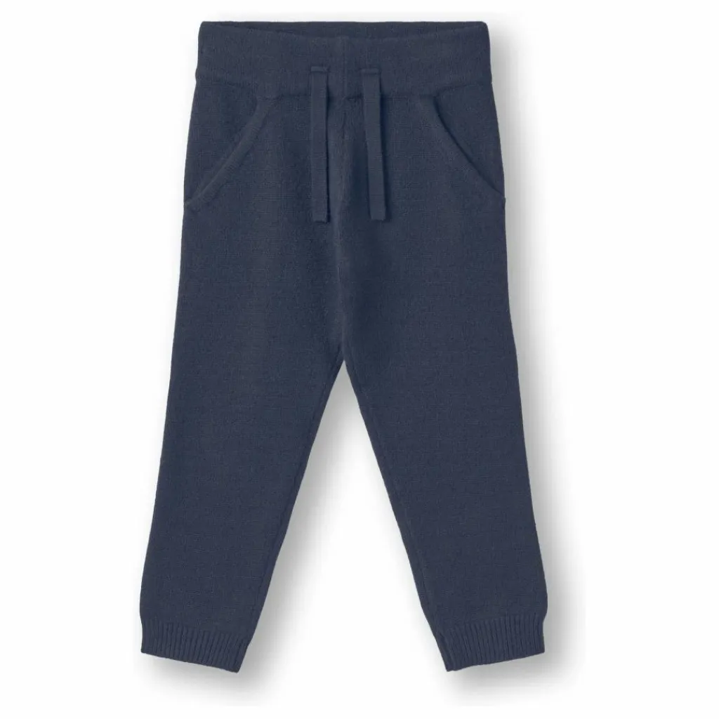 - Pantalon en maille souple et ample avec une large taille élastique. Le pantalon possède des ficelles décoratives ainsi que des poches et un ourlet côtelé aux chevilles.