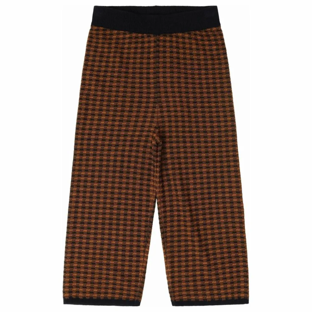 - Ce pantalon tricoté est fabriqué en pure laine mérinos et présente une coupe décontractée avec un entrejambe bas pour plus de confort. La taille élastiquée permet d’ajuster le pantalon. Le pantalon est tricoté dans un motif à carreaux structuré et possède des jambes larges avec des bords côtelés. La laine mérinos est certifiée BLUESIGN® et RWS, exempte de produits chimiques nocifs, et provient de moutons non mulets.