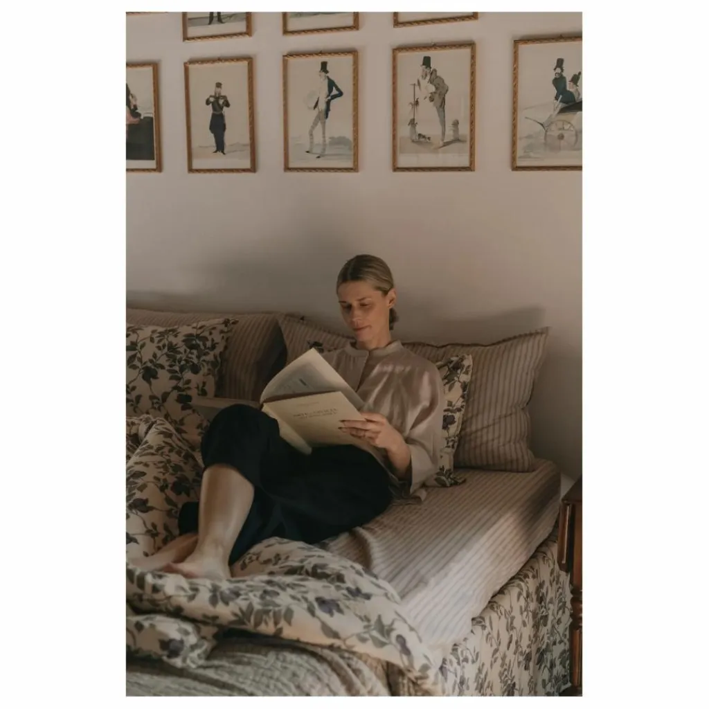 Ce drap-housse protégera votre lit et égaiera la pièce grâce à ses jolies rayures aux reflets mauves.