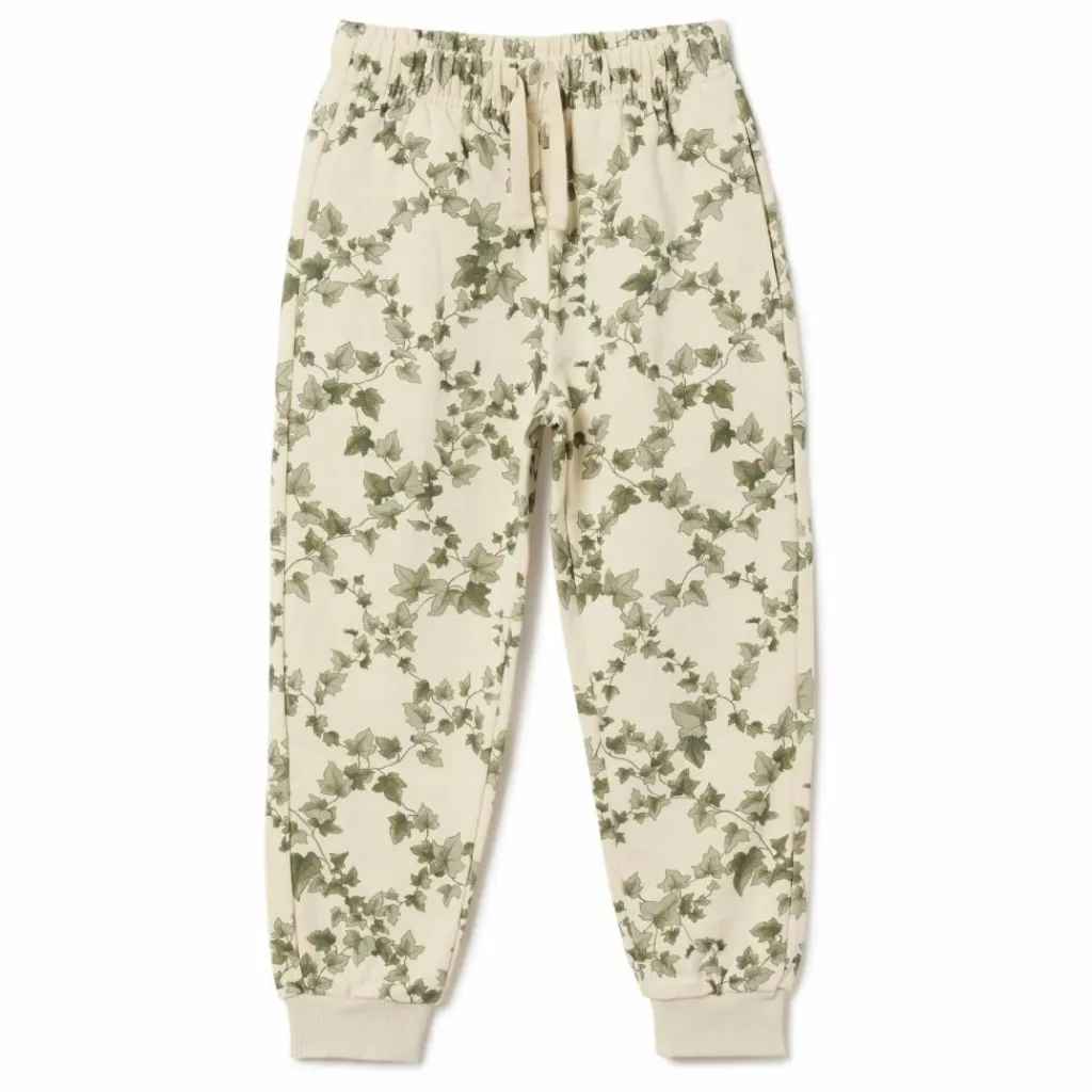 - Pantalon de survêtement doux en coton biologique. Le pantalon de survêtement est doté d’un cordon de serrage à la taille et de poches latérales pour les tailles enfant.