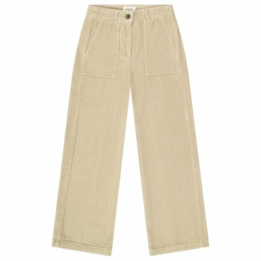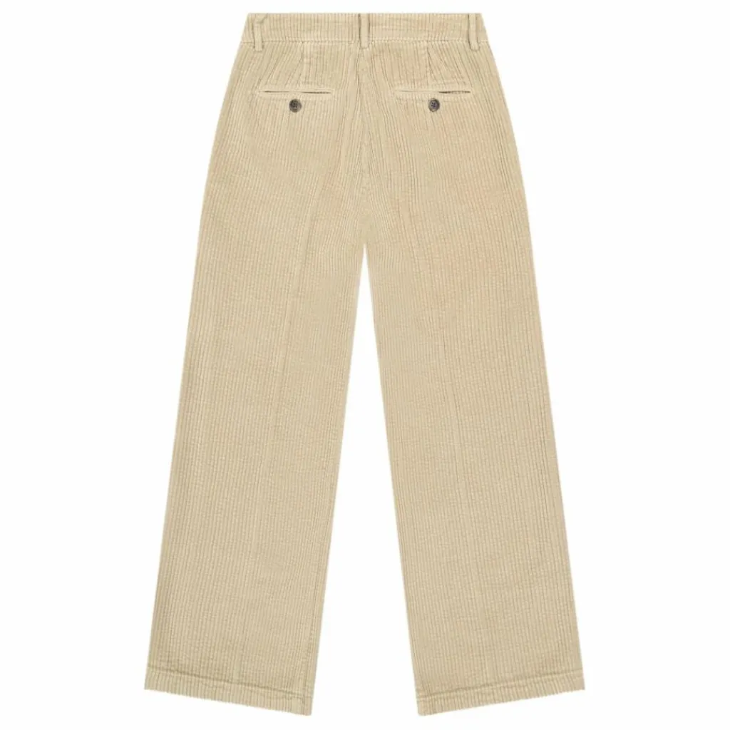 - Pantalon fille large et fluide. Taille haute, ceinture plate avec passants, fermeture à glissière et boutons à la taille. Deux poches italiennes sur les côtés et deux poches passepoilées boutonnées au dos. Bas surpiqué.