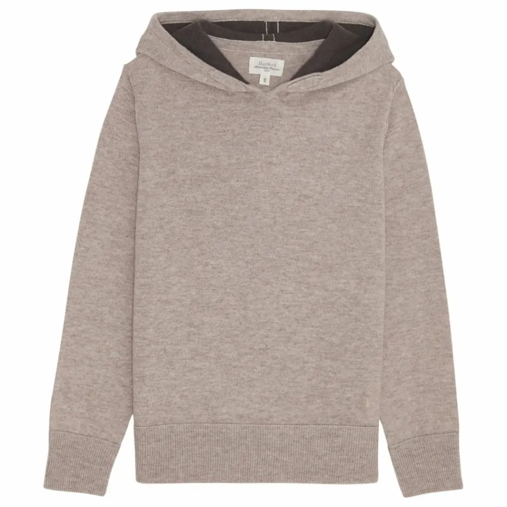 - Pull garçon à capuche zippé en laine et cachemire. Bords-côtes aux poignets et à la taille. Détails contrastés à l’intérieur de la capuche.