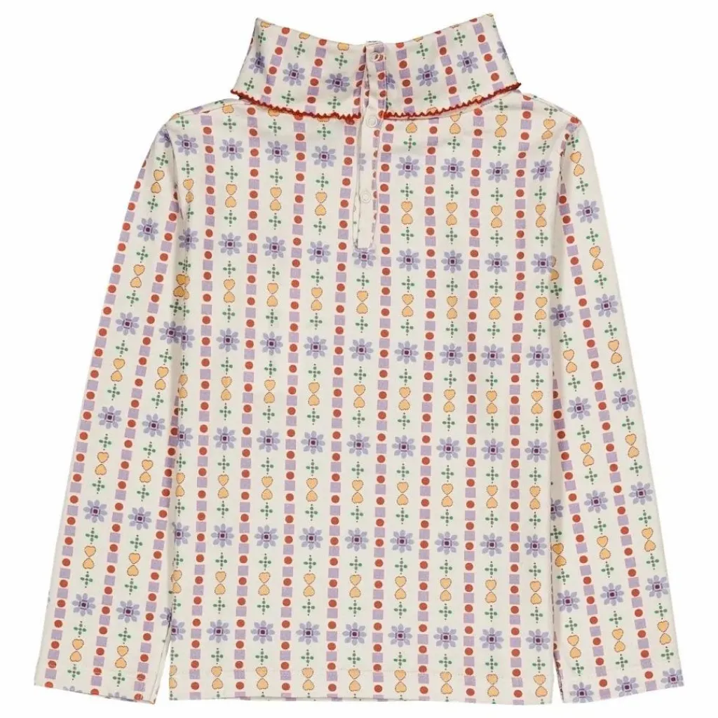 - T-shirt à manches longues et col roulé en jersey imprimé avec croquet contrastant à l’extrémité.