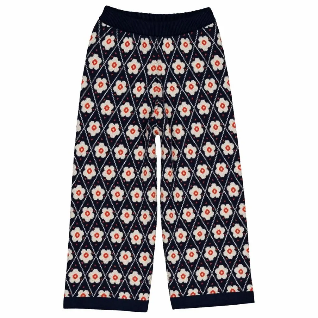 - Pantalon en tricot jacquard. Taille élastiquée, jambe droite.