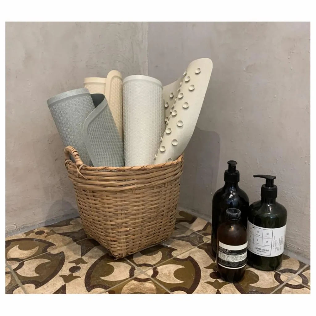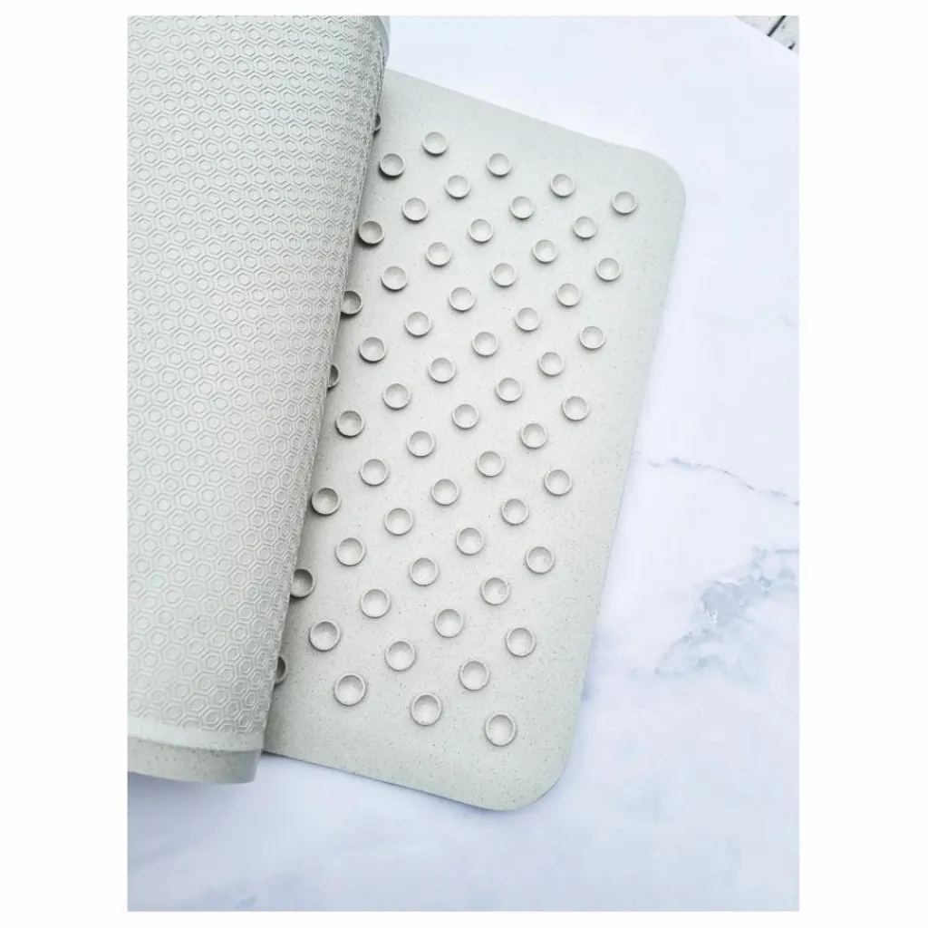 Le caoutchouc est recyclé pour être réutilisé et offrir de nouveaux produits. Les tapis de bain permettent de créer un nouveau cycle et de proposer un produit sain et à l’empreinte carbone réduite.
