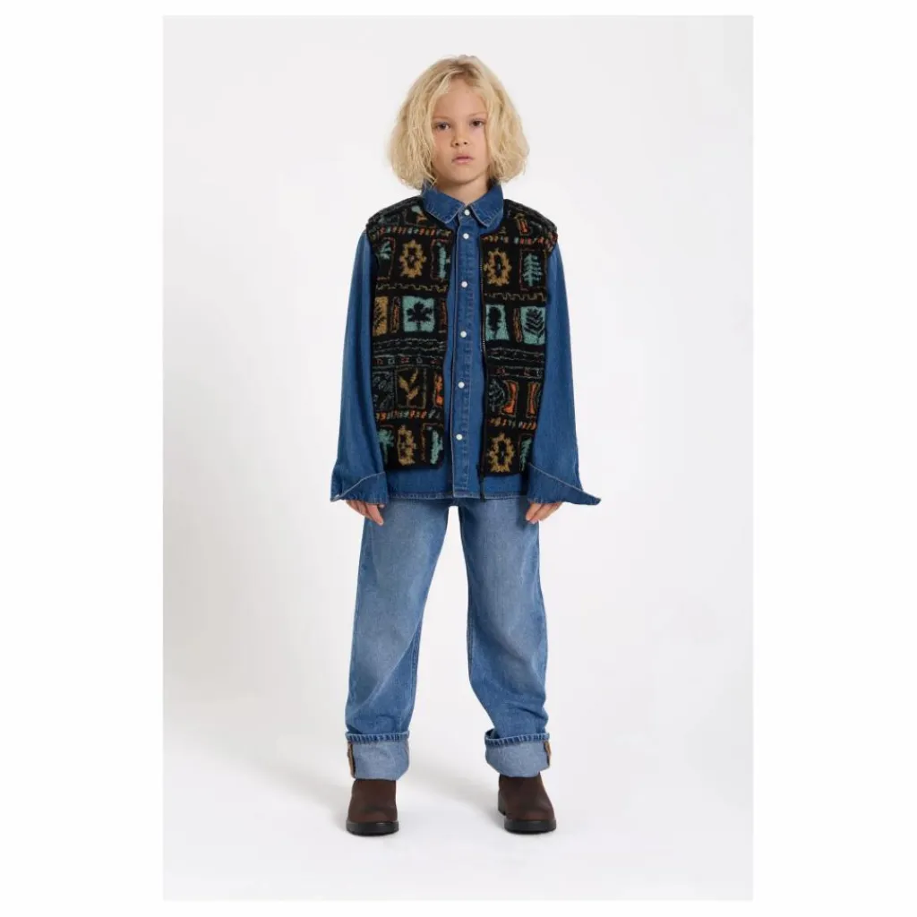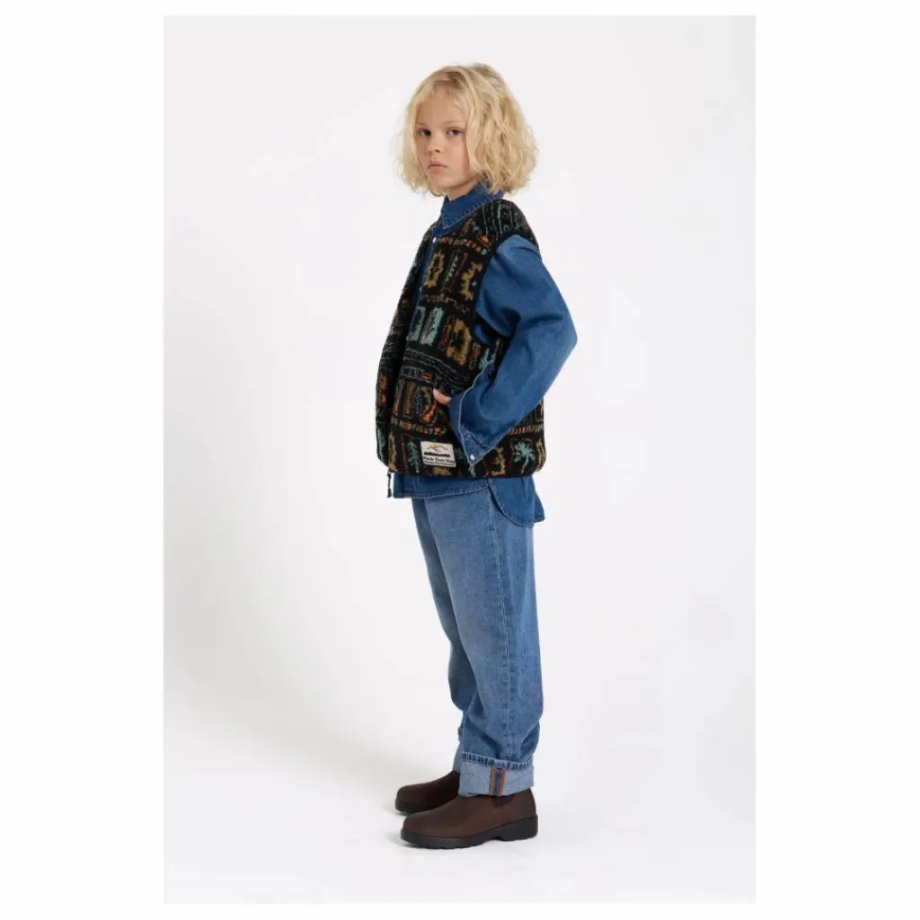 – Pression à la taille jusqu’à la taille 8 ans, puis bouton jeans