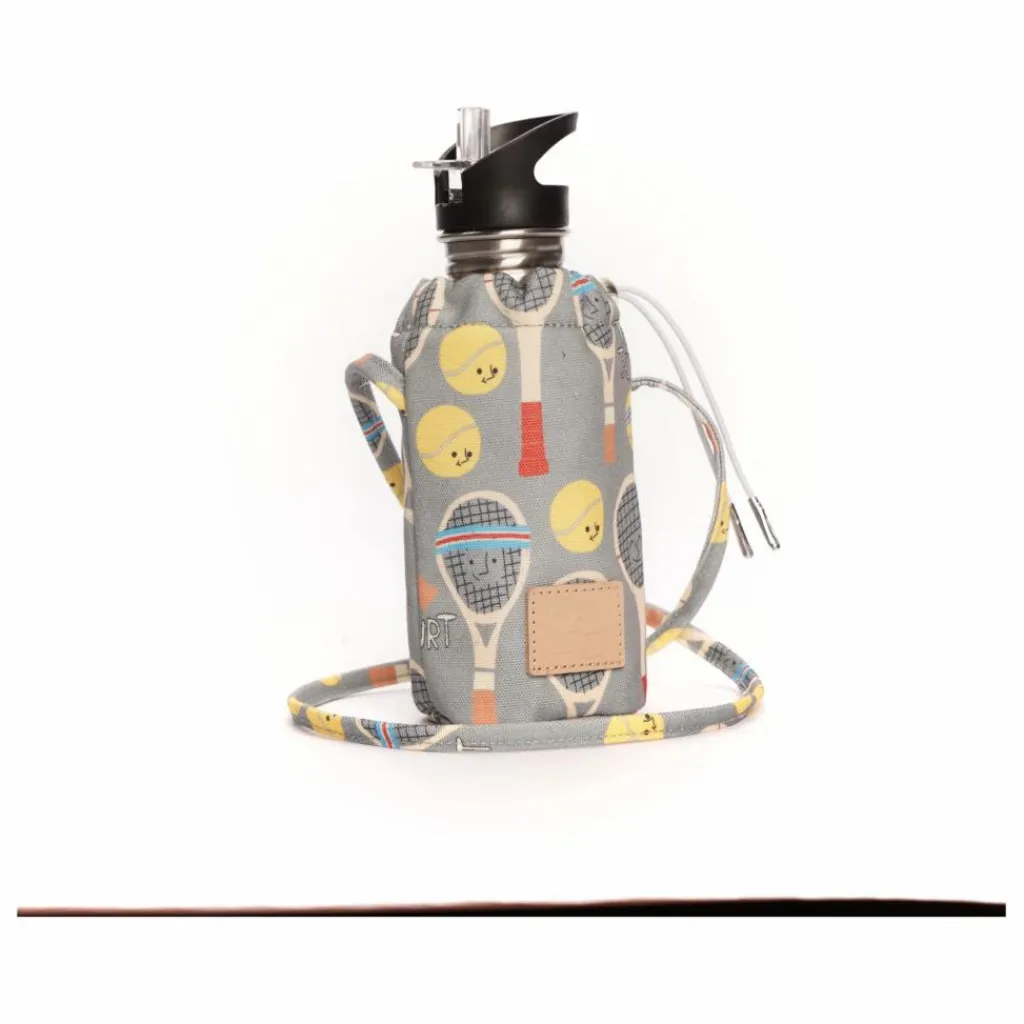 lanière en tissu.inclus une gourde en inox gravé avec le logo jojo