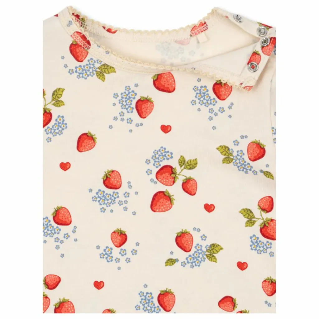 - Grenouillère douce à manches longues. Elle est dotée de boutons-pression à l’entrejambe pour faciliter l’habillage. Matières : 95% coton biologique, 5% élasthanne. GOTS, biologique, certifié par CU1094701.