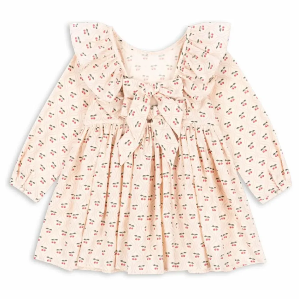 - Robe en coton biologique doux avec des détails à volants sur les manches et un nœud dans le dos. 100% coton biologique GOTS, Organic, certifié par CU1094701