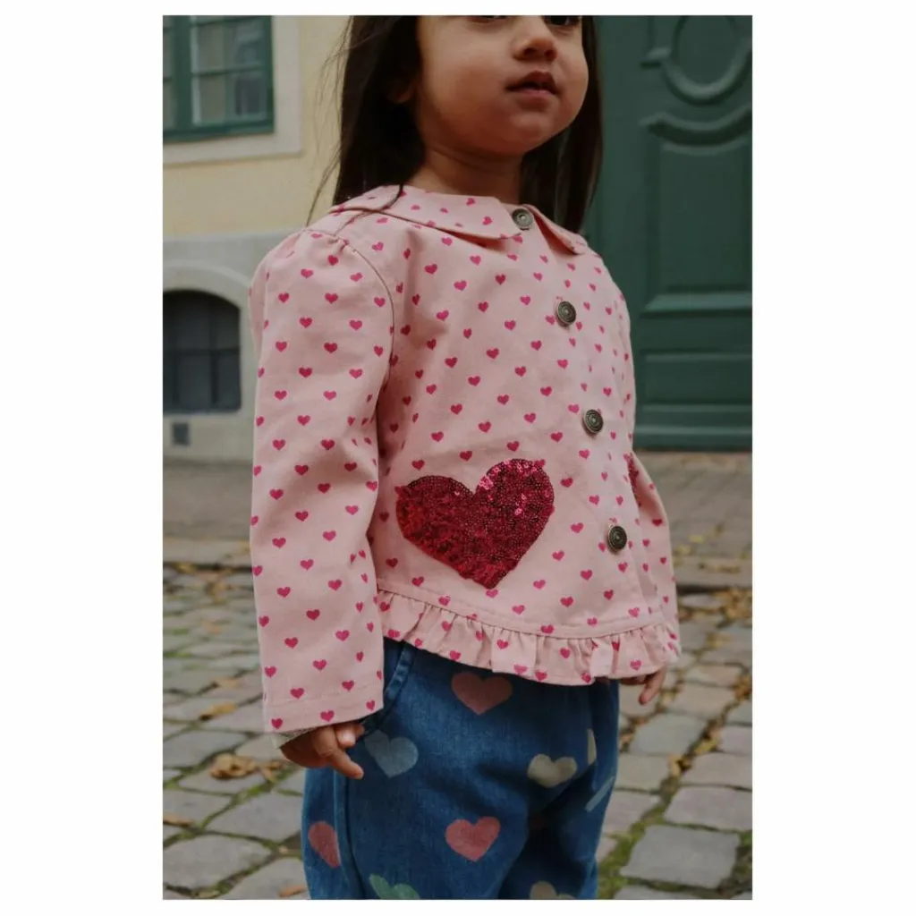 - Veste chemise en sergé de coton avec paillettes, col régulier et ourlets à volants.