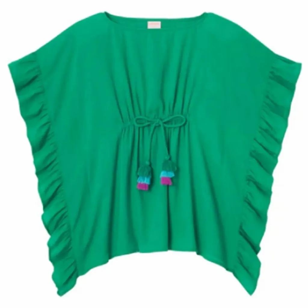 - Resserré à la taille, Emmanchures volantées, Encolure ronde, Emmanchures larges, Froncé à la taille