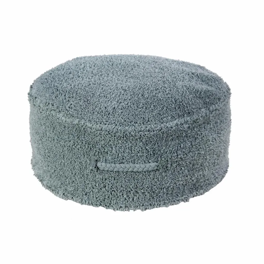 - Pouf aux tons bleus vintage combinable avec le tapis de votre choix. Il est empilable c’est pourquoi il n’occupe que peu d’espace. Il a une tresse sur un côté pour pouvoir être transporté facilement et un zip pour sortir le rembourrage et pouvoir le laver.