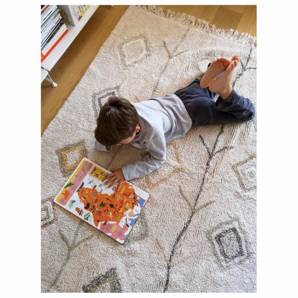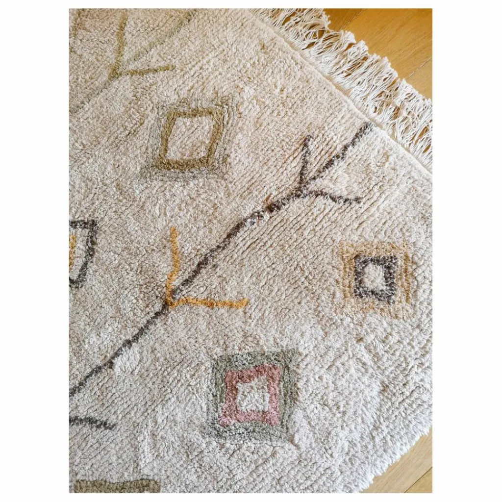 - Conseils : Ne vous inquiétez pas si des peluches apparaissent, car il s’agit de résidus de fibres produits par la découpe du coton. Nous recommandons un nettoyage régulier à l’aspirateur en utilisant un mode de faible puissance d’aspiration et un réglage pour tapis à poils longs. N’utilisez pas de barre battante ni d’autres accessoires rotatifs qui pourraient endommager les poils. Nous ne recommandons pas l’utilisation de robots de nettoyage des sols. Si vous trouvez des fils longs ou lâches, coupez-les avec une paire de ciseaux. Ne tirez pas sur les fils.