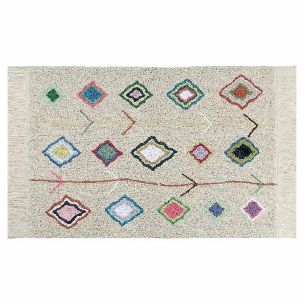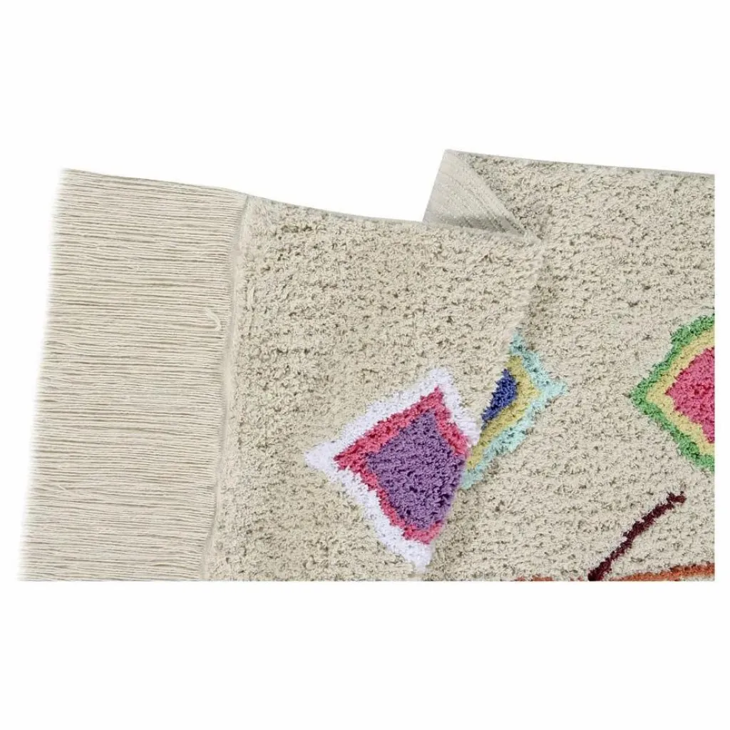 - Les couleurs de ce tapis sont inspirées des dessins de Carolina, la plus jeune fille de Lorena Canals. Il s’agit d’une pièce polyvalente avec une ambiance bohème qui combine élégamment jusqu’à 18 couleurs différentes, et il s’agit d’un best seller.