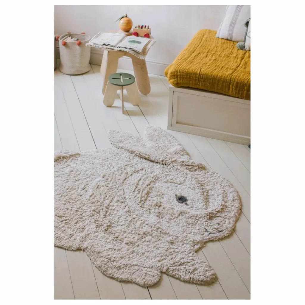 - Découvrez le charme ludique de notre tapis animal lapin. Fabriqué à la main avec soin dans des couleurs naturelles et ivoire, en mélangeant différentes hauteurs de poils pour lui donner un aspect et un toucher veloutés.