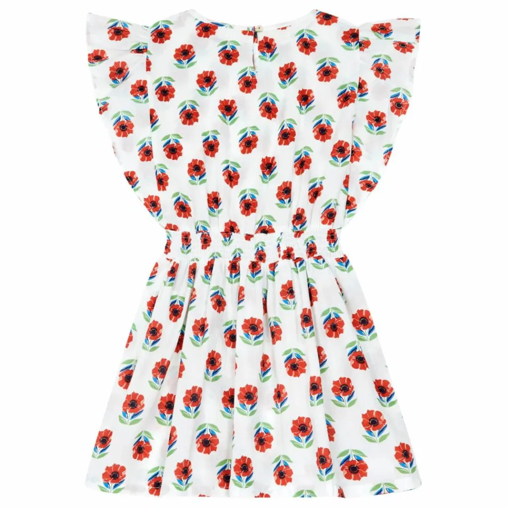 - Smocké à la taille, Emmanchures volantées, Encolure ronde