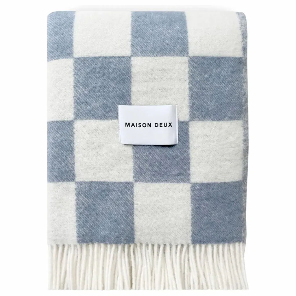 - La couverture en damier est tissée au jacquard en 100 % laine de Nouvelle-Zélande avec des franges sur les petits côtés. Cette couverture épaisse de qualité supérieure est inversée sur le côté opposé. Dimensions : 130 x 200 cm
