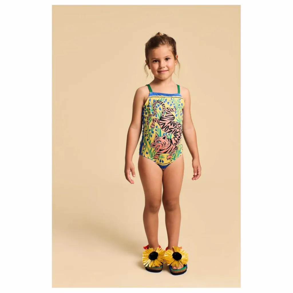 - Le maillot de bain tigre vert est un maillot de bain élastique avec des rayures et un imprimé tigre. Il a des doubles bretelles et une croix dans le dos. 88% Pes rec 12% Ea. Fabriqué au Portugal.