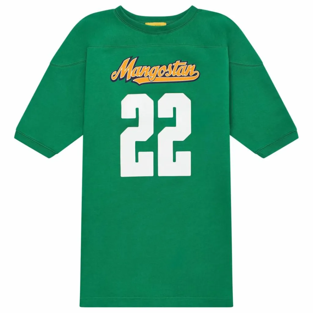 - LA ROBE MANGOSTAN TEAM GREEN EST UNE ROBE MIDI DE COUPE OVERSIZE AVEC DES MANCHES LONGUES ET UN IMPRIMÉ VINTAGE POSITONAL. 100% COTON. FABRIQUÉ AU PORTUGAL