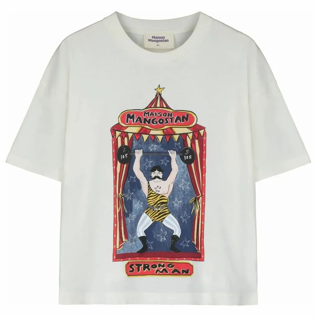 - Le T-shirt Strong Man en blanc nuageux, à la coupe décontractée, présente une impression de placement peinte à la main sur le devant. Il a des manches courtes et une encolure ronde. Composition : 100 % coton biologique Cet article est de taille normale, nous vous suggérons de choisir votre taille habituelle.
