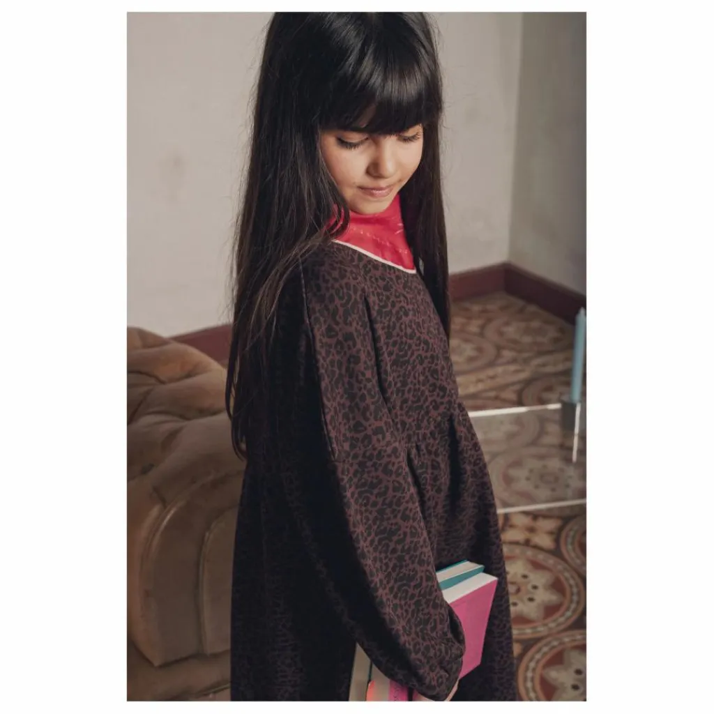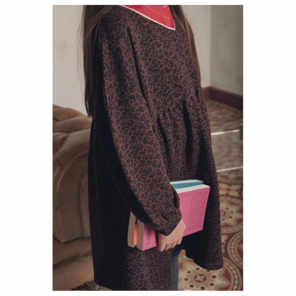 - La robe aussi stylée que confortable ! Elle se distingue par son imprimé léopard chocolat et sa coupe ample au style décontracté en molleton de coton. Idéale pour accompagner les filles de 3 à 12 ans au quotidien.