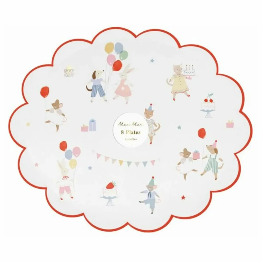 - Adorable alerte animalière ! Ces grandes assiettes en carton sont parfaites pour la petite enfance et les premiers anniversaires. Inspiré des illustrations de mode vintage et des palettes de couleurs, avec des touches de feuille d’or brillante et une bordure rouge vif pour garder le look actuel. Ce design festonné élégant est idéal pour superposer une table et pour donner une touche décorative.