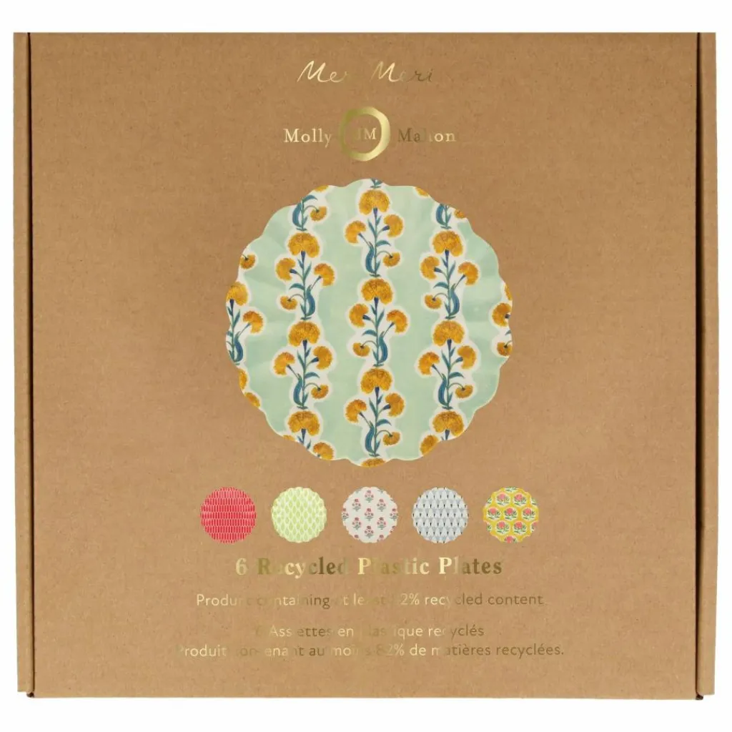 - Nous avons collaboré avec la célèbre graveuse britannique Molly Mahon, en utilisant ses motifs pour créer une magnifique collection de fête bohème. Cet ensemble de petites assiettes réutilisables en plastique recyclé ajoutera du style à n’importe quelle fête.