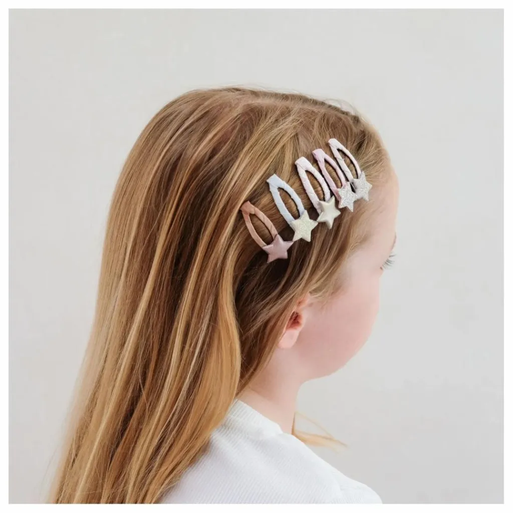 - Ajoutez une touche de magie avec les mini clic clacs Stellina ! Ces pinces étoilées pailletées brillent de mille feux, parfaites pour illuminer n’importe quelle coiffure d’un éclat ludique. Faciles à porter et amusants à mélanger, ils sont le petit accessoire parfait pour faire de chaque jour un moment spécial.