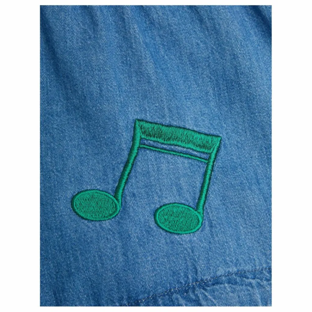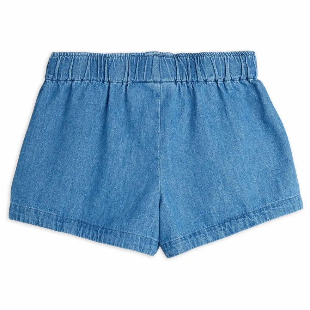 - Short en denim léger avec broderies colorées note patches