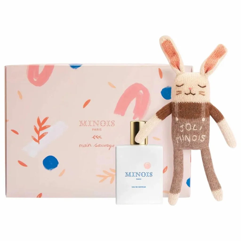 Ce joli coffret cadeau réuni l’Eau de Senteur – la fragrance douce et réconfortante de Minois – et le doudou lapin Main Sauvage x Minois, la plus mignonne des éditions limitées.
