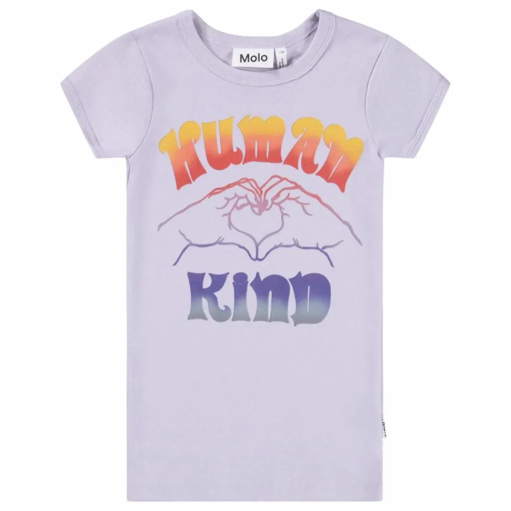 - Ce t-shirt violet de Molo est fabriqué en coton biologique doux et comporte le texte « Human Kind » sur le devant avec des mains formant un cœur. Le t-shirt est ajusté, avec un col rond et une bande de propreté dans une couleur assortie.