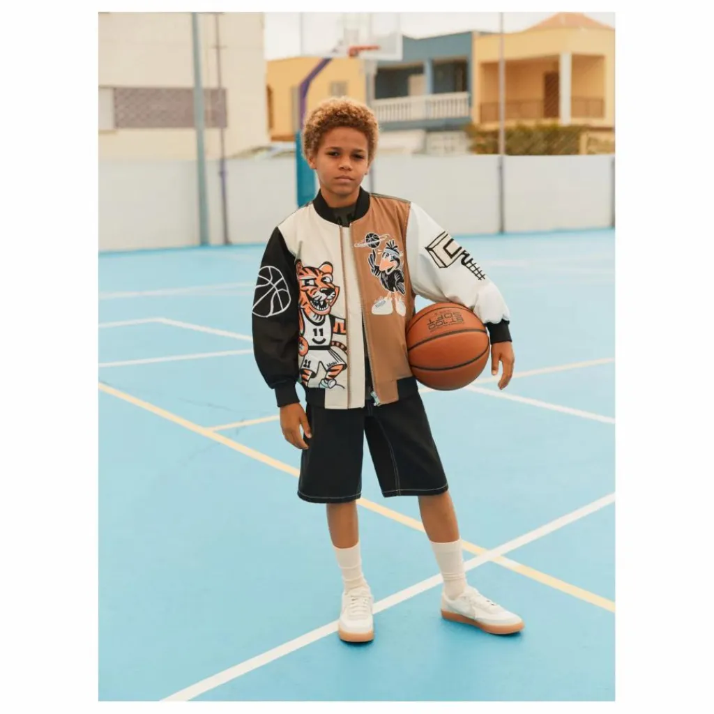 - Ce blouson bombardier présente un design imaginatif avec des motifs brodés ludiques, qui séduisent l’esprit d’aventure des enfants. Elle comporte des bords côtelés pour un confort accru et des poches latérales pour un usage pratique. Idéale pour les saisons de transition, cette veste légère apporte juste ce qu’il faut de chaleur tout en ajoutant une touche tendance à n’importe quelle tenue.