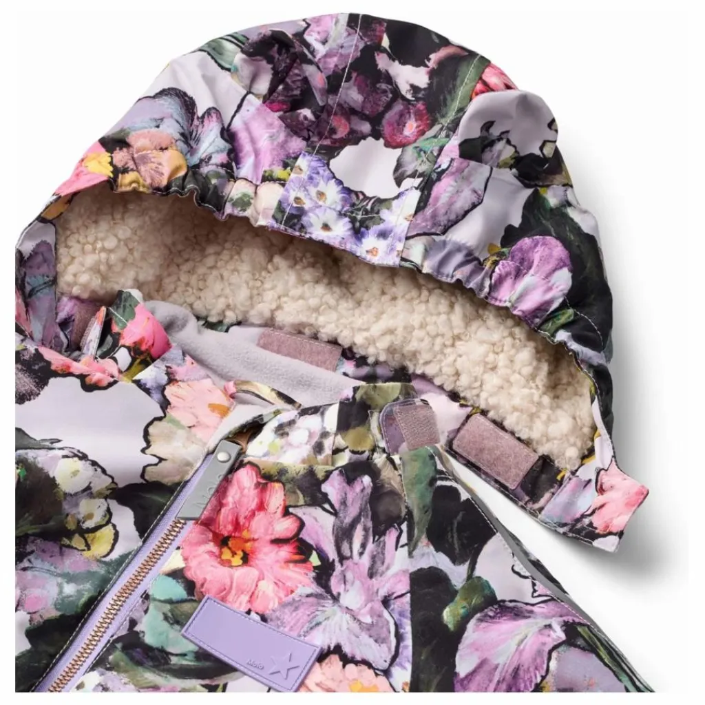- Cette combinaison de neige déperlante et fleurie de Molo est fabriquée en polyester recyclé. Elle est dotée d’une capuche amovible doublée et d’une fermeture éclair extra-longue à l’avant, ce qui permet de l’enfiler et de l’enlever facilement. Des élastiques à la taille, aux manches et aux poignets des jambes empêchent la neige, la pluie et le vent de pénétrer, tandis que les moufles et les bottes restent bien en place. La combinaison comprend également des bandes réfléchissantes sur les poches et les manches, une doublure en polaire au bas et au dos, et un élastique réglable à la taille pour un ajustement parfait et confortable.