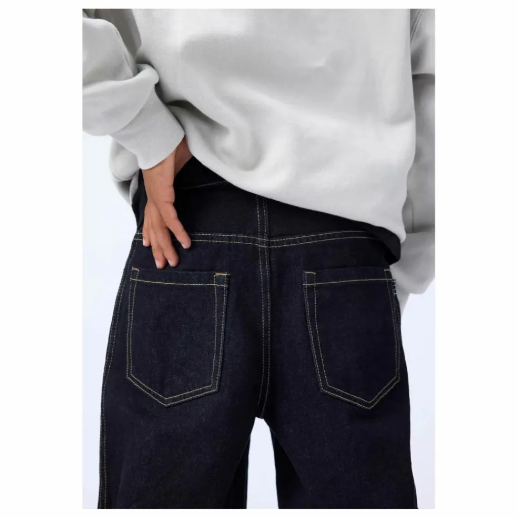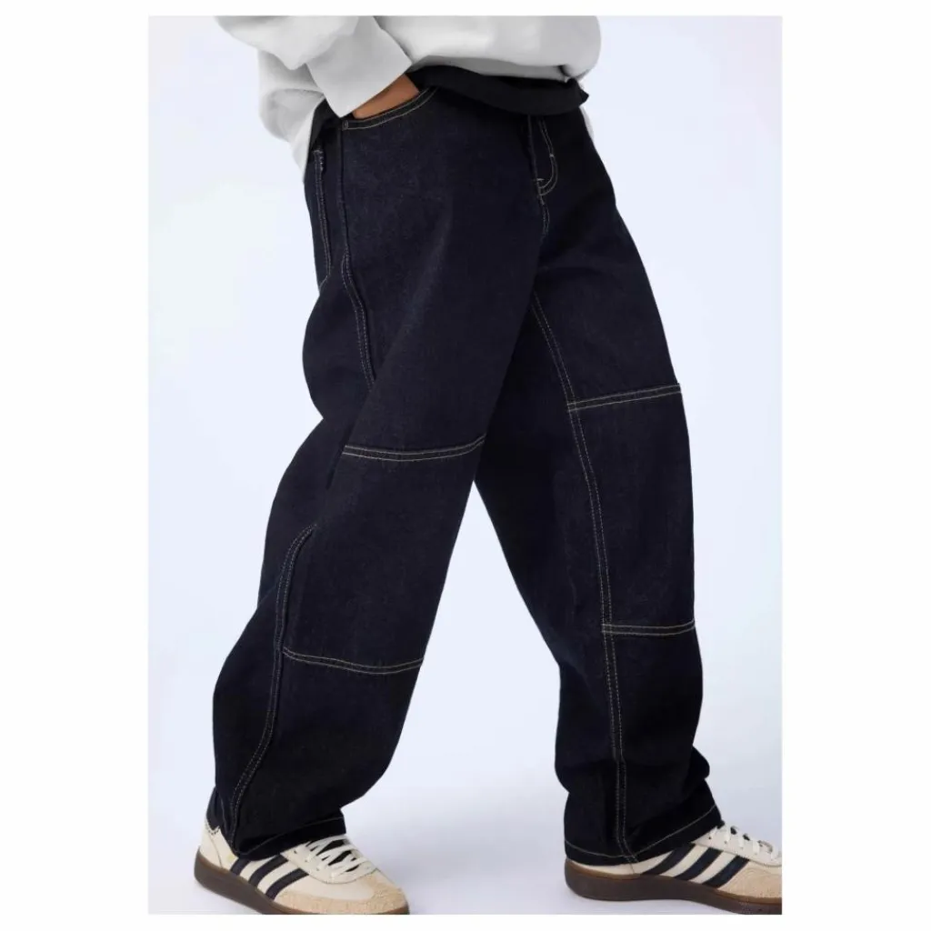 - Ce jean Molo surdimensionné bleu foncé est en denim brut avec de légères surpiqûres aux genoux. Il a cinq poches, des passants de ceinture et une coupe oversize. La taille peut être ajustée à l’aide d’un élastique interne pour un ajustement optimal à tous les enfants. Les tailles 92-134 sont dotées d’un bouton pression, tandis que les tailles 140-176 sont dotées d’un bouton de jean classique. Il est recommandé de choisir une taille plus petite pour une coupe moins ample, surtout si l’enfant est entre deux tailles.