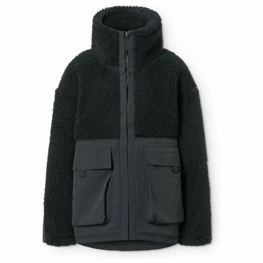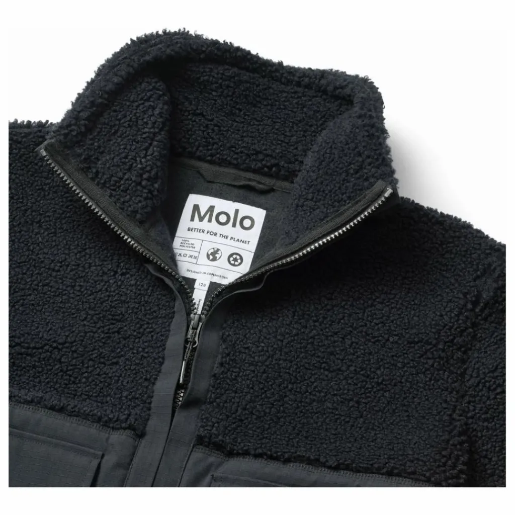 - Cette veste polaire noire de Molo est fabriquée en polyester recyclé et comporte des détails en nylon résistant et déperlant sur les manches, le dos et les poches extérieures avant. La veste est dotée d’un col montant et d’une fermeture à glissière sur le devant.