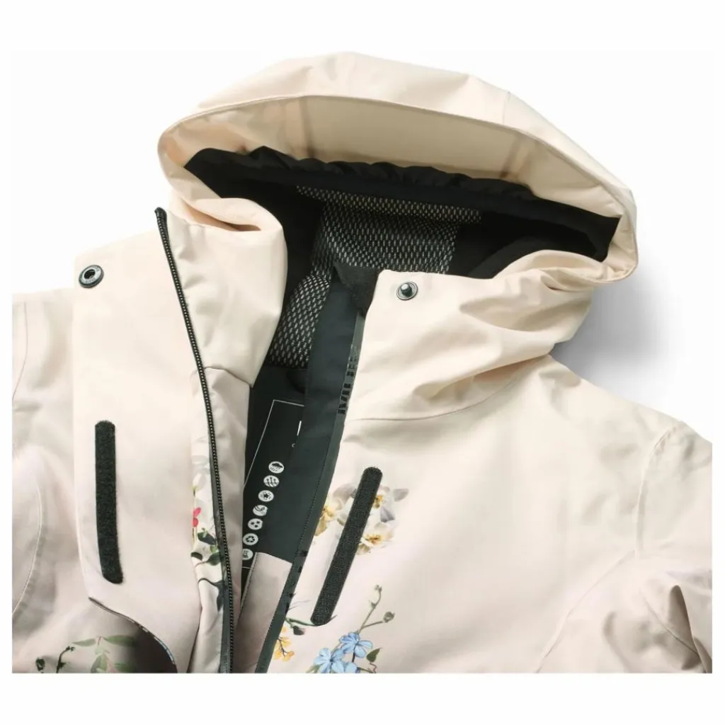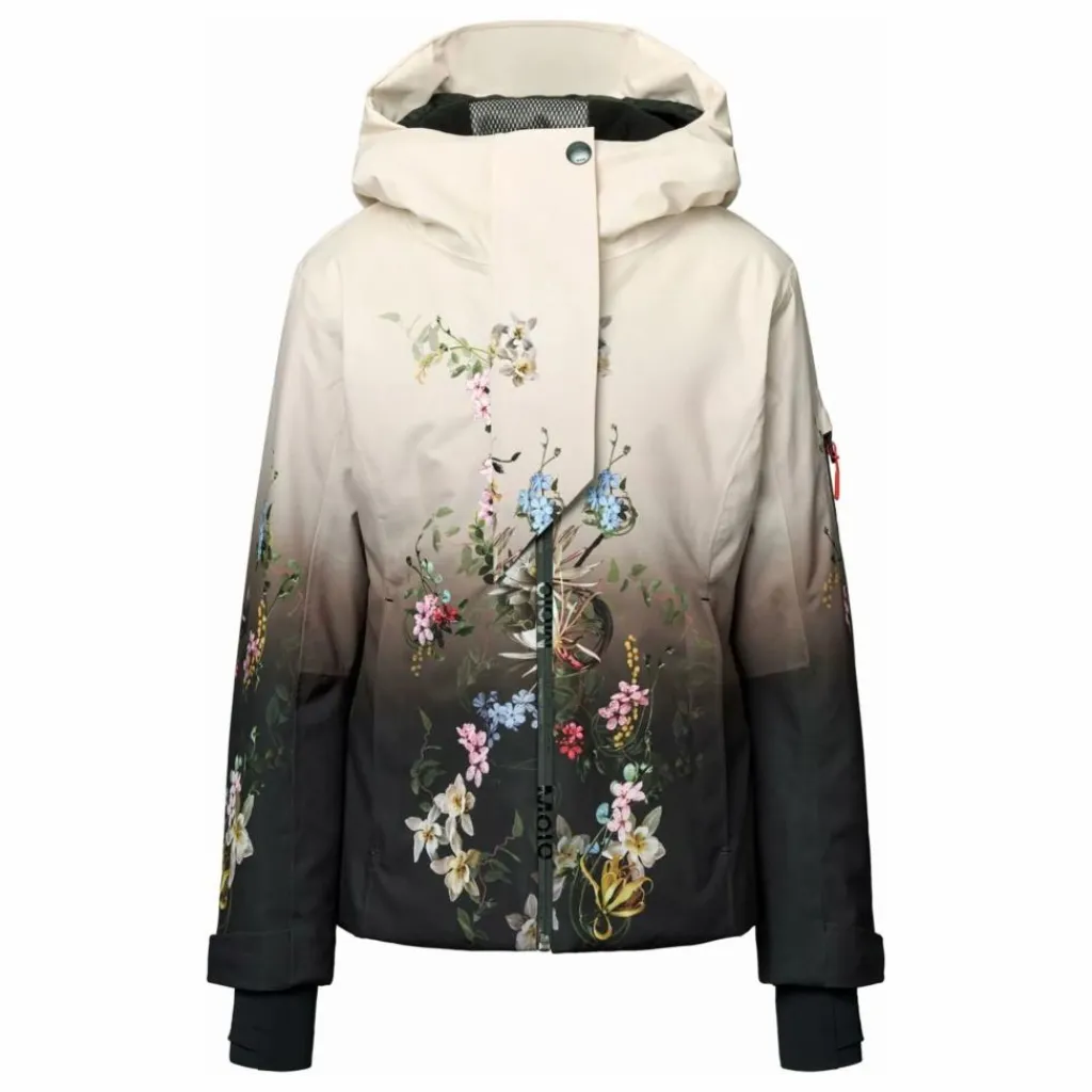 - Cette veste d’hiver coupe-vent et imperméable de Molo est fabriquée en polyester recyclé et imprimée de fleurs colorées. La veste est dotée d’une capuche doublée, d’une fermeture à glissière frontale pratique avec rabat et de poches à glissière imperméables. Elle possède une poche sur la manche pour un forfait de ski et une poche intérieure pour un rangement supplémentaire. La veste est équipée d’un rabat coupe-vent à la taille, de velcro aux poignets et d’ouvertures pour les manches avec des trous pour les pouces, ce qui permet d’empêcher la neige, le vent et l’eau de pénétrer dans la veste. De plus, la veste est doublée de polaire et rembourrée de 3M™ Thinsulate™. Caractéristiques : – Coupe-vent et imperméable – Pression de la colonne d’eau : 20 000 mm – Respirabilité : 20 000 g/m2/24h – 3M™ Thinsulate™ (température jusqu’à -25°C) – Sans PFC (PFOS et PFOA) – Rabat coupe-vent et velcro autour de la taille et des manches – Capuche doublée – Fermetures à glissière imperméables – Réflecteur pour augmenter la visibilité dans le trafic.