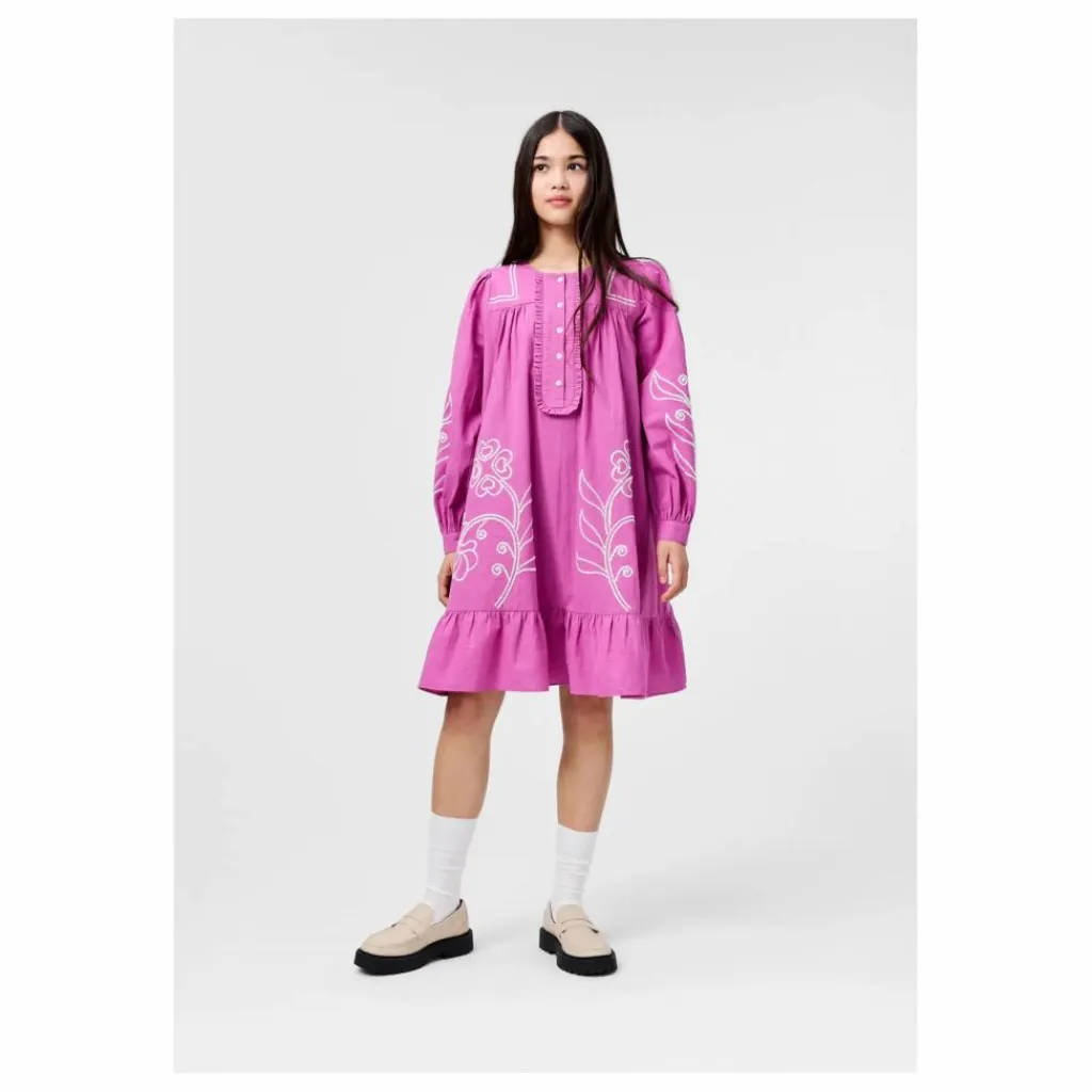 - Cette robe en coton doux est ornée de ravissants volants et d’une coupe surdimensionnée, ce qui la rend confortable et facile à porter tout au long de la journée. Elle se ferme par un bouton sur le devant et présente des broderies artisanales complexes sur le devant et les manches. Parfaite pour toutes les occasions, cette robe allie style et fonctionnalité pour les petits qui aiment s’exprimer.