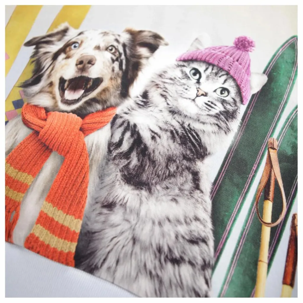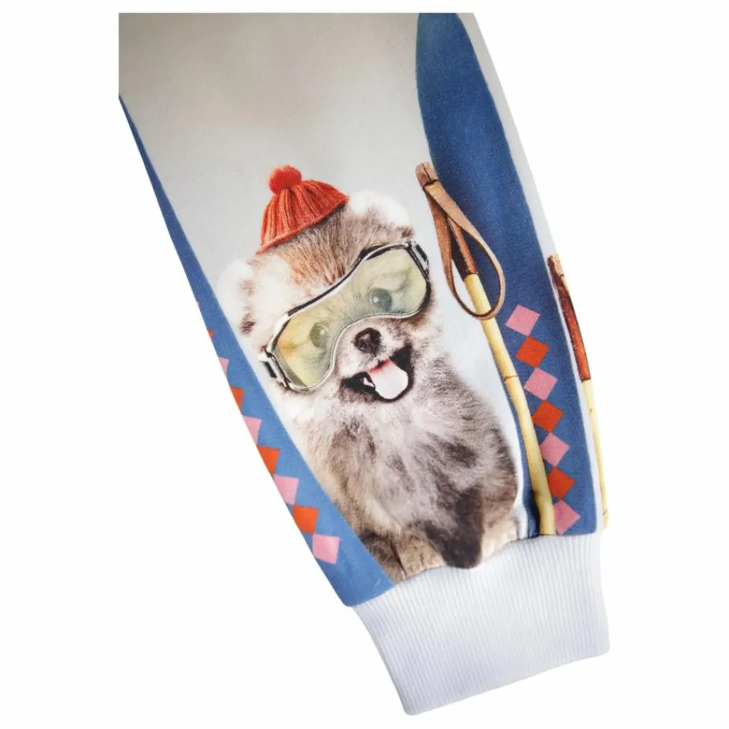 - Ce sweat-shirt bleu clair de Molo est fabriqué en coton biologique et présente une coupe ample, une encolure ronde, des bords côtelés et un imprimé d’animaux en excursion de ski.
