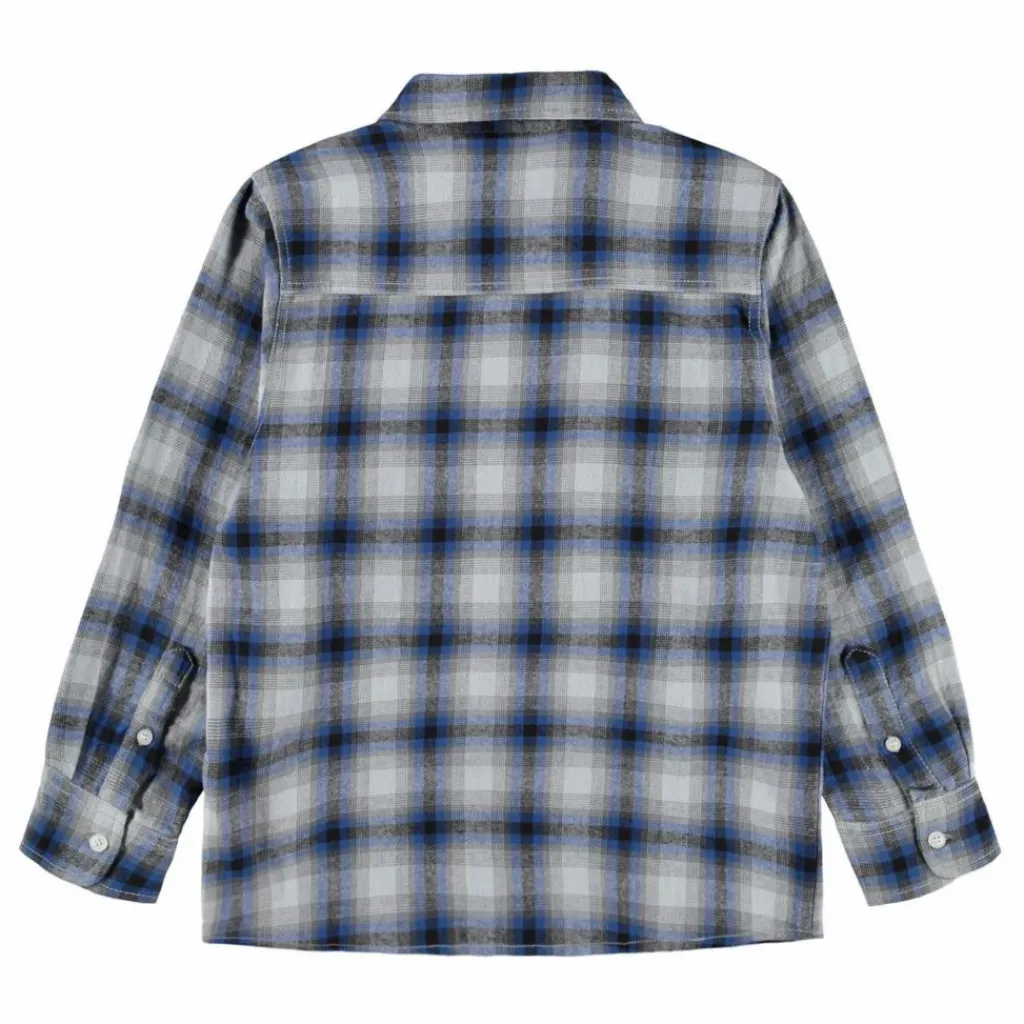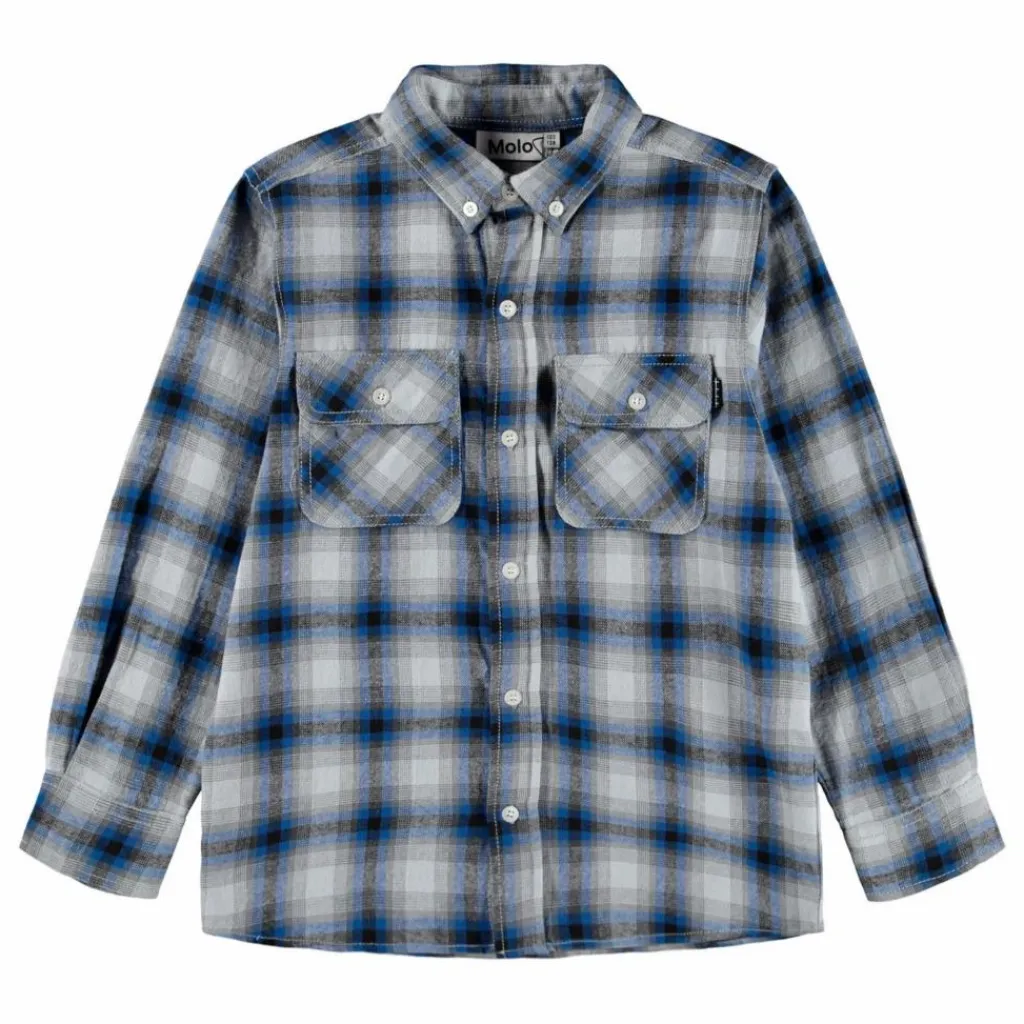 - Cette chemise en coton à carreaux bleu foncé et blanc de Molo se ferme par un bouton sur le devant, a un col boutonné, des manches longues avec poignets, des poches cousues sur la poitrine et une coupe régulière. À porter boutonnée ou en surchemise par-dessus un T-shirt.