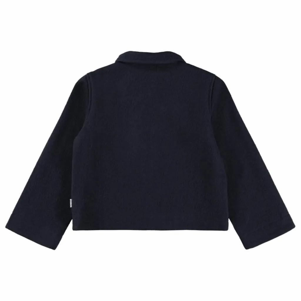 - Cette veste en laine bleu foncé de Molo est ornée d’une élégante broderie sur le devant. La veste a un col classique, une fermeture à boutons et une longueur aux hanches qui la rend adaptée à un usage intérieur et extérieur.